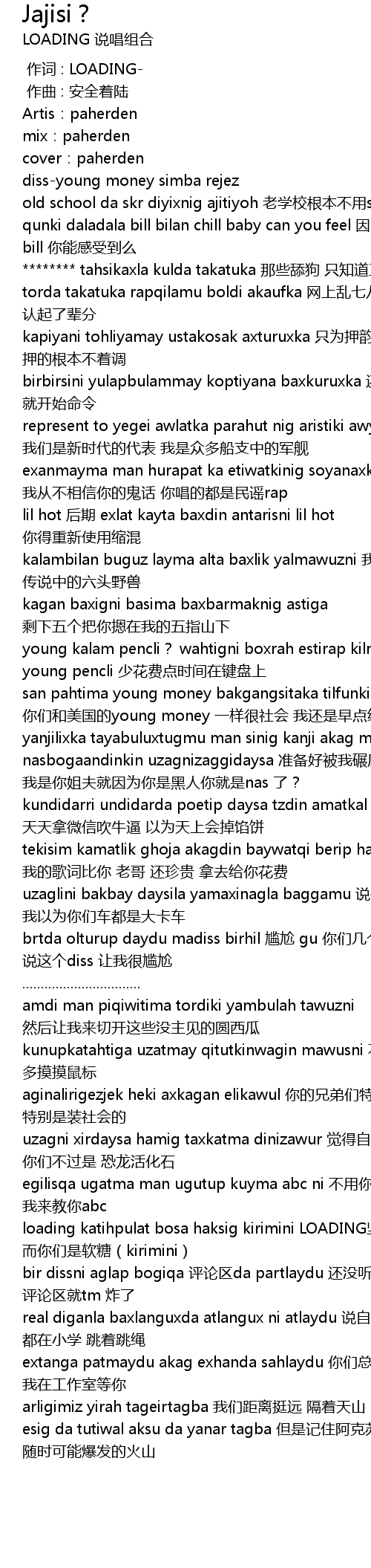 | [01:16.665] | bir dissni aglap bogiqa 评论区da partlaydu 还没听完一个diss 评论区就tm 炸了 |