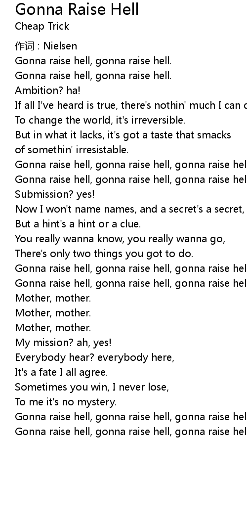 | Gonna raise hell, gonna raise hell, gonna raise hell. |