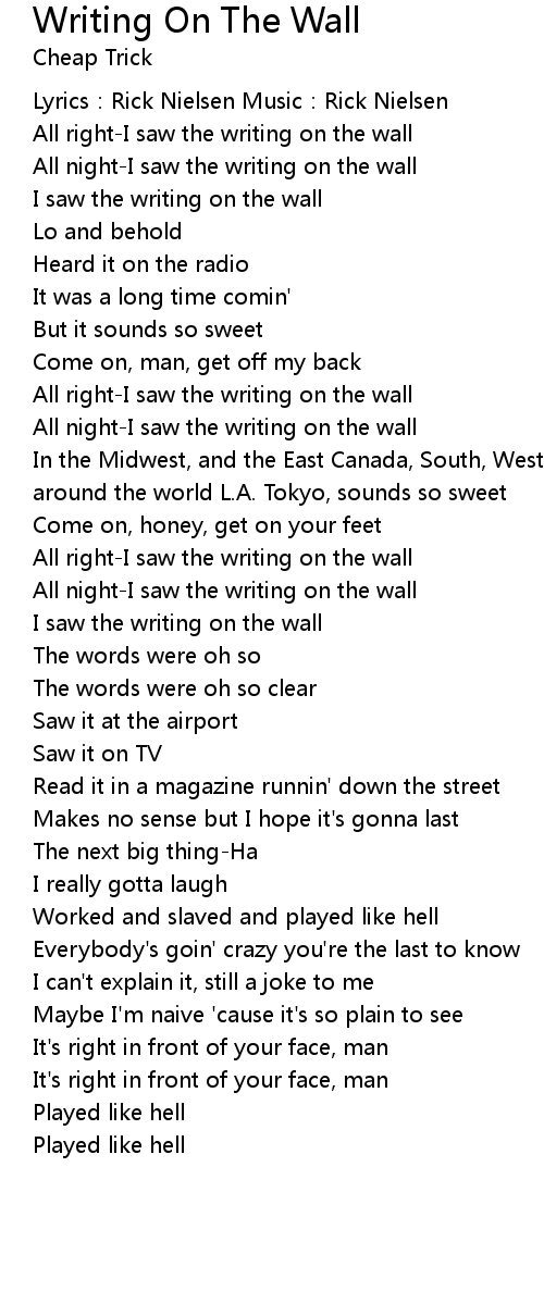 | Lyrics: Rick Nielsen Music: Rick Nielsen | |