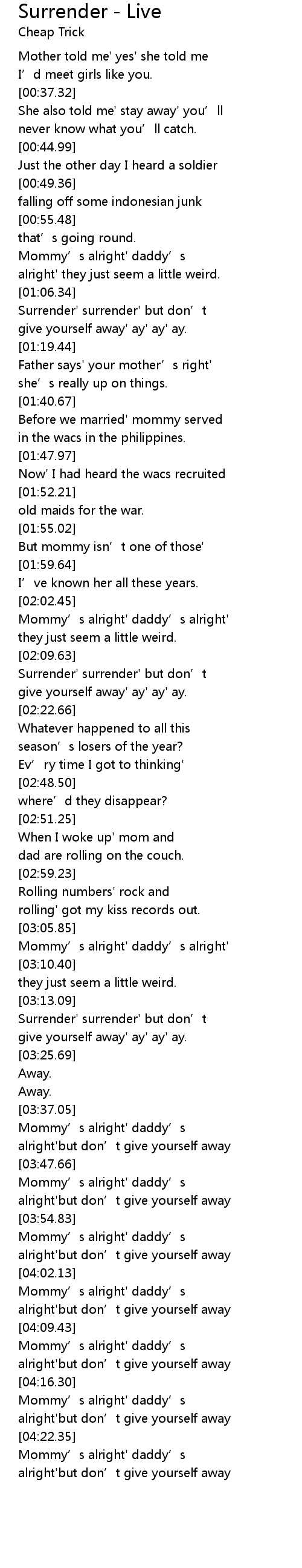 | [03:19.58] | give yourself away' ay' ay' ay. |