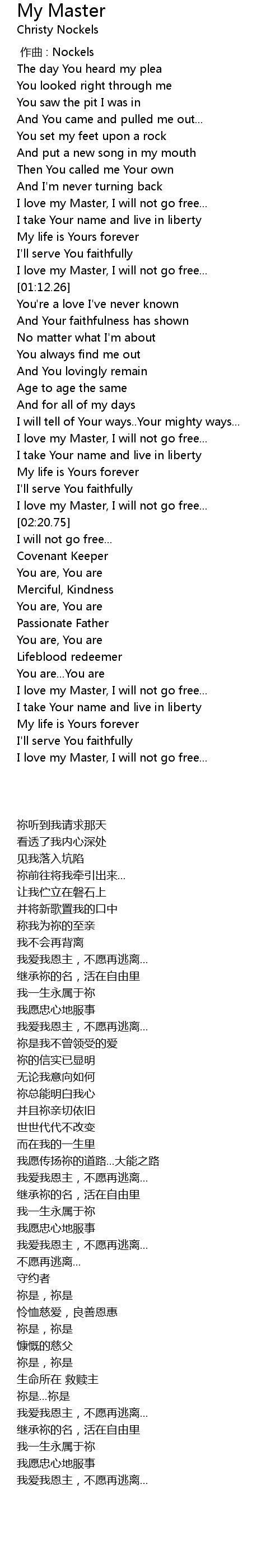 | [01:42.76] | I will tell of Your ways..Your mighty ways... |