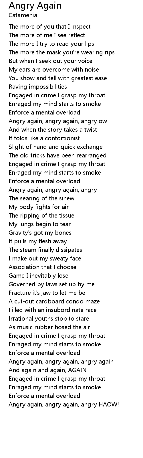 | Angry again, angry again, angry again | |