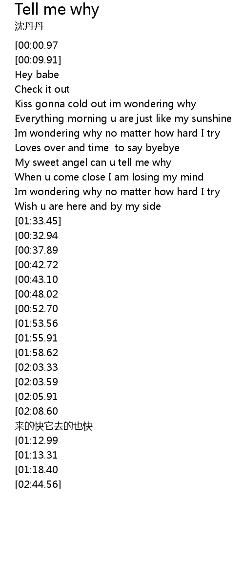 | [02:46.35][00:00.97] | 沈丹丹 - Tell Me Why |