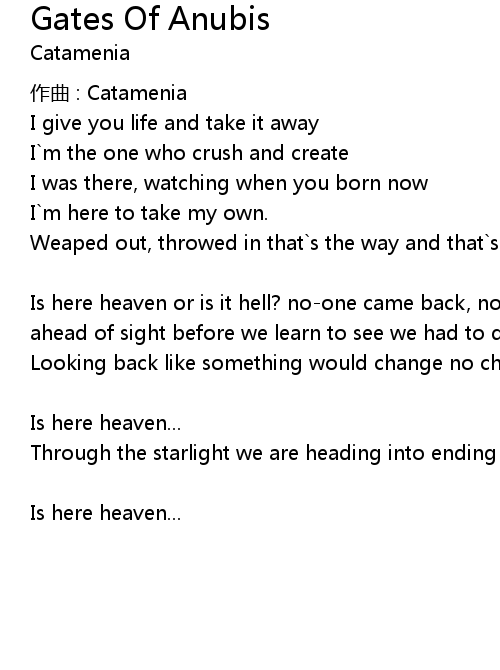| Looking back like something would change no choice to choose the side on the way just prepare forgot your past life through the gates of anubis... [Chorus] | |