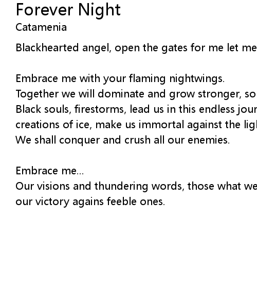 Blackhearted angel, open the gates for me let me walk through the skies eternal. [Chorus] |