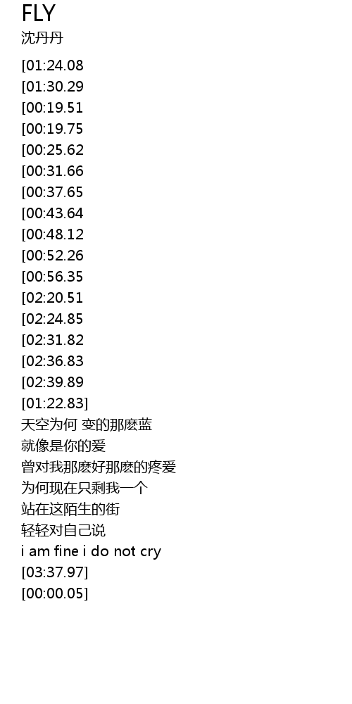 | [03:38.93][01:24.08][00:01.00] | 沈丹丹 - fly |