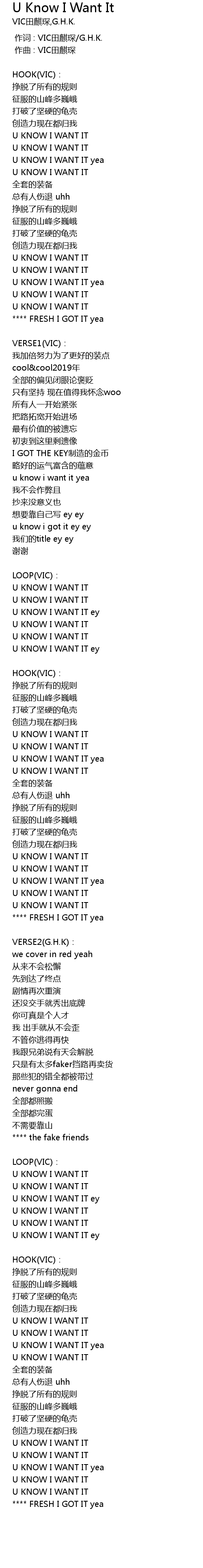 | [00:00.000] | 作词 : VIC田麒琛/G.H.K. |