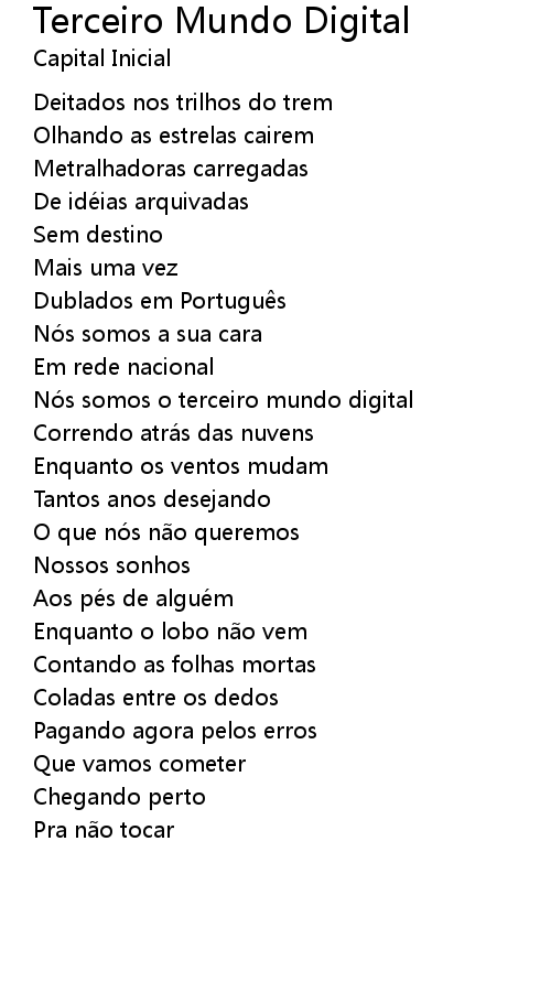 | Song | Terceiro Mundo Digital |