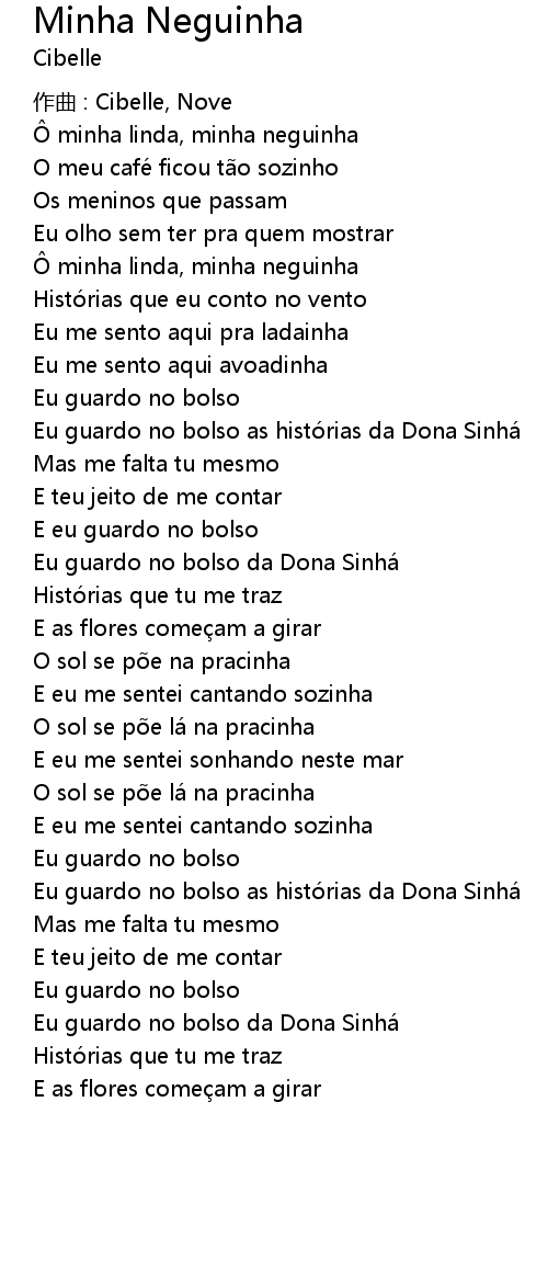 | Eu guardo no bolso as histó rias da Dona Sinhá | |