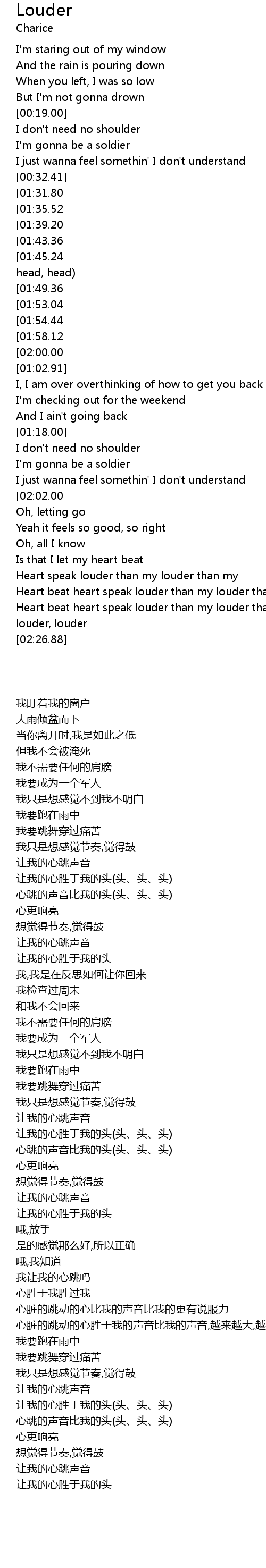| [02:20.73] | Heart beat heart speak louder than my louder than my louder, louder, louder, louder |