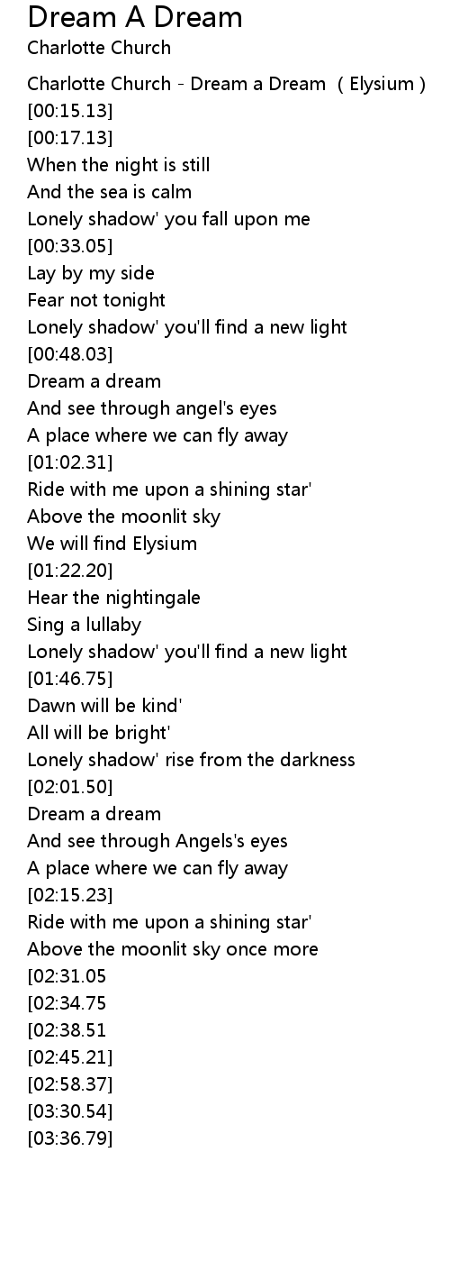 | [00:00.00] | Charlotte Church - Dream a Dream (Elysium) |
