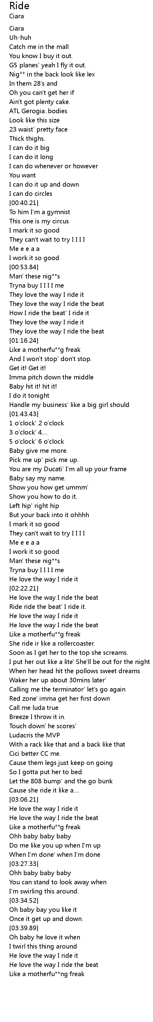 Ride ride the beat' I ride it. |
