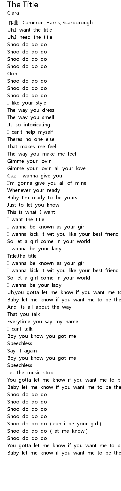 | [01:58.66] | Shoo do do do (let me know) |