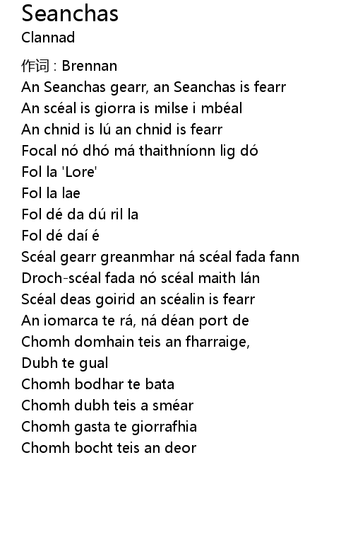| Focal nó dhó má thaithní onn lig dó | |
