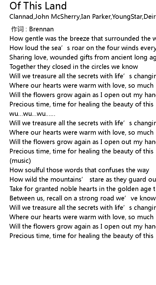 | [02:47.26] | Precious time, time for healing the beauty of this land |