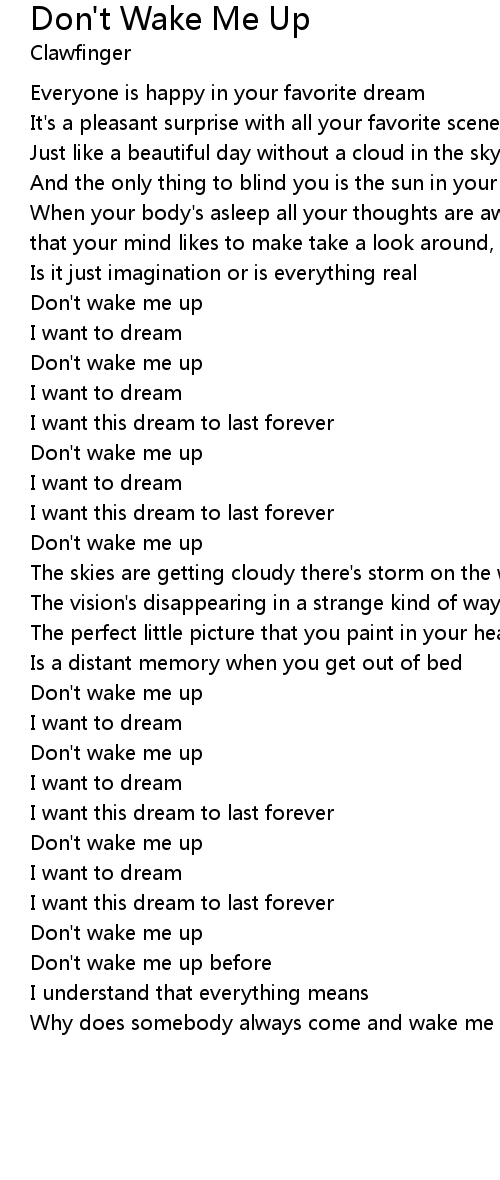 Don't wake me up before |