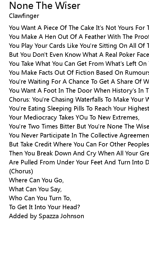 You Play Your Cards Like You're Sitting On All Of The Aces, |