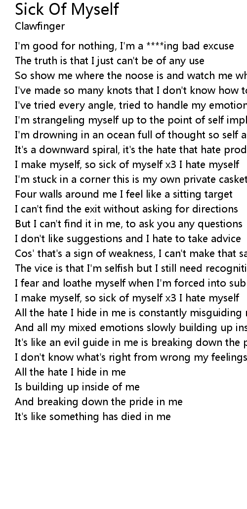 I make myself, so sick of myself x3 I hate myself |