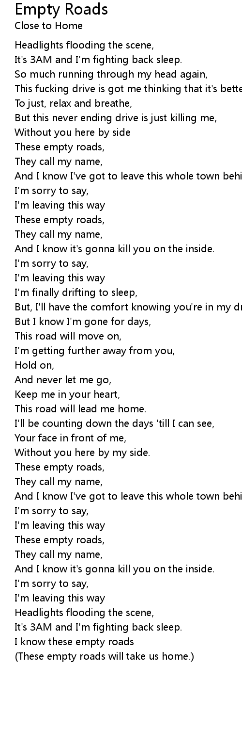 (These empty roads will take us home.) |