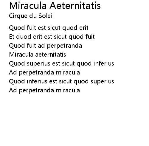 | Song | Miracula Aeternitatis |