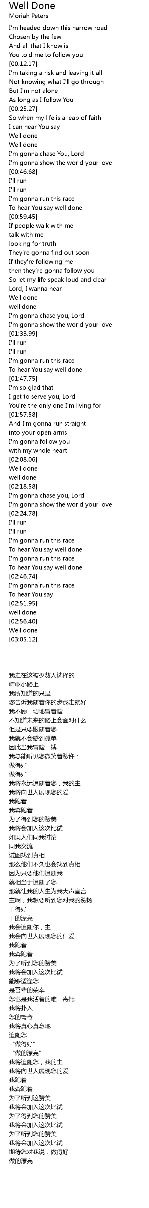 To hear You say well done |