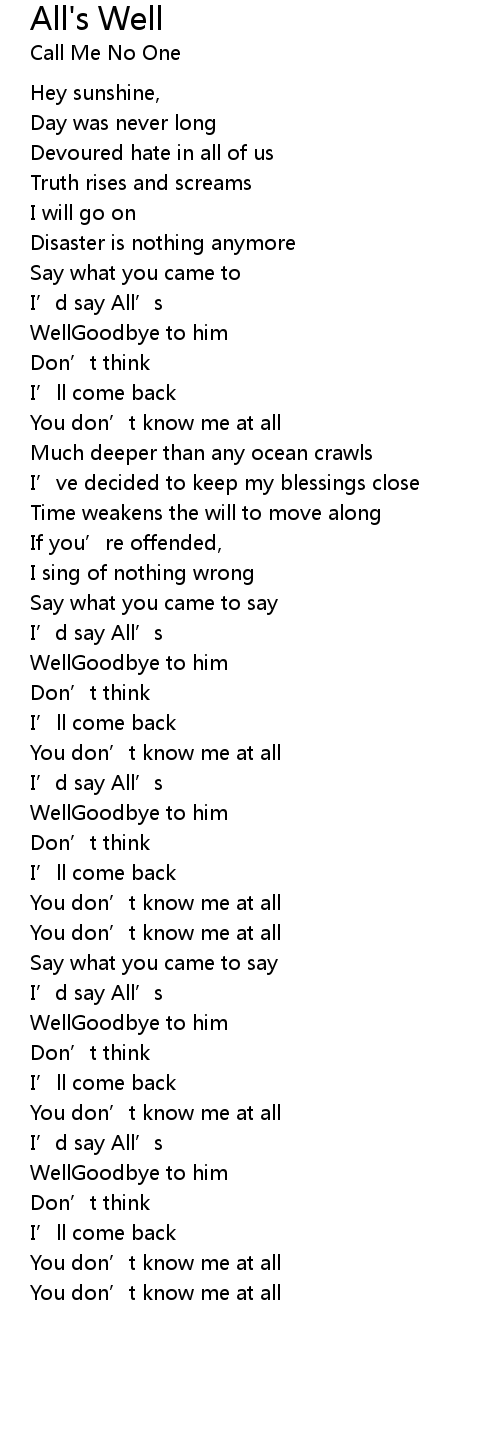 | Song | All's Well |