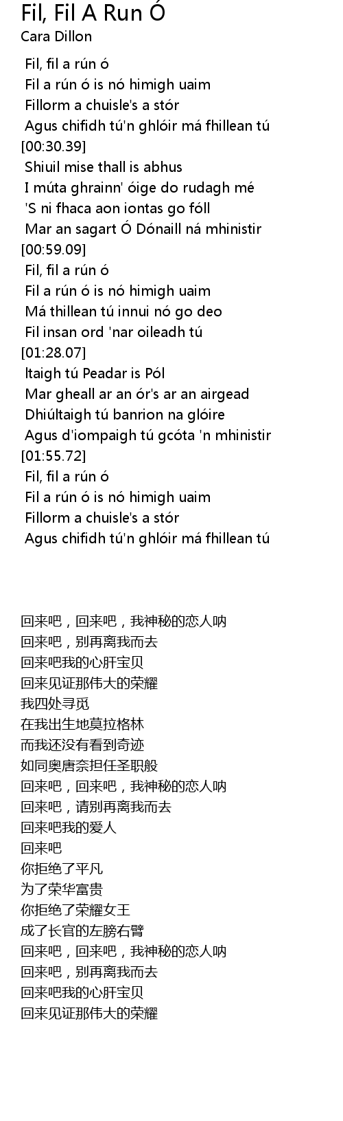 | [02:03.31] | Fil a rú n ó is nó himigh uaim |