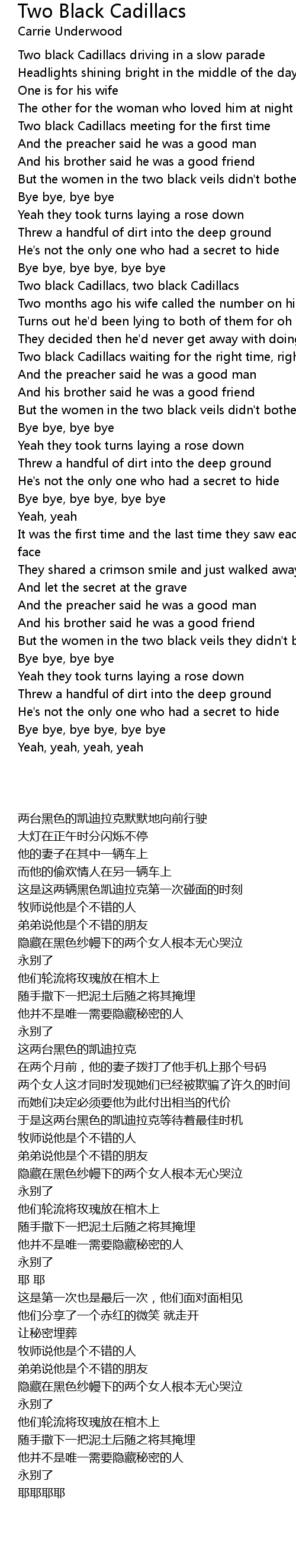 But the women in the two black veils they didn't bother to cry |