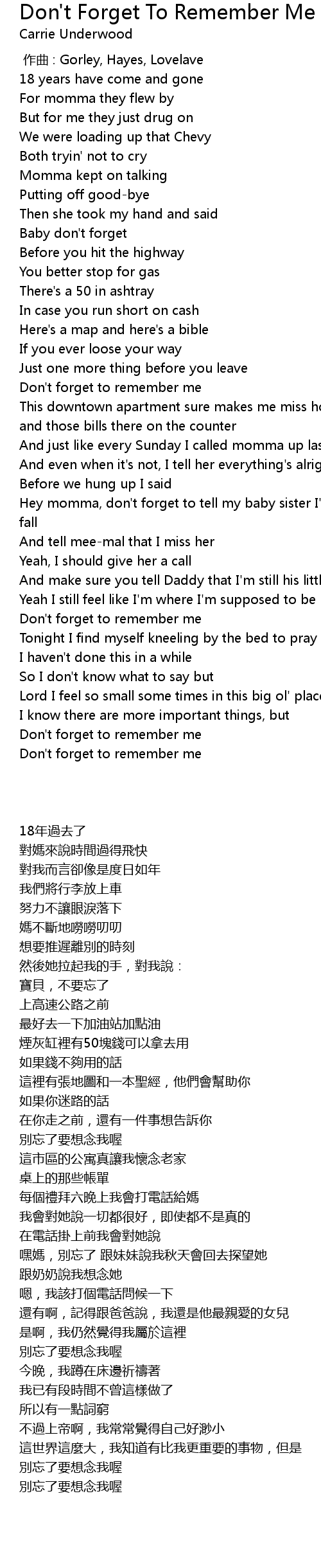 | [03:23.290] | Don' t forget to remember me |