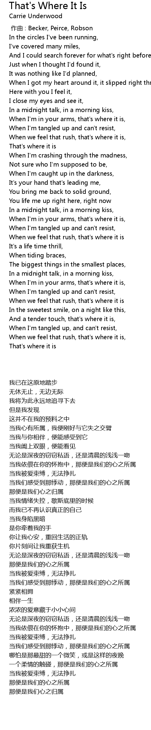 | [01:10.78] | When I'm in your arms, that's where it is, |