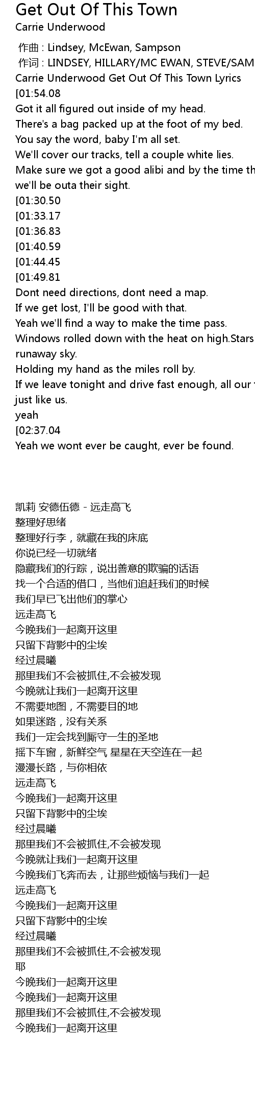 | [00:15.65] | Carrie Underwood Get Out Of This Town Lyrics |