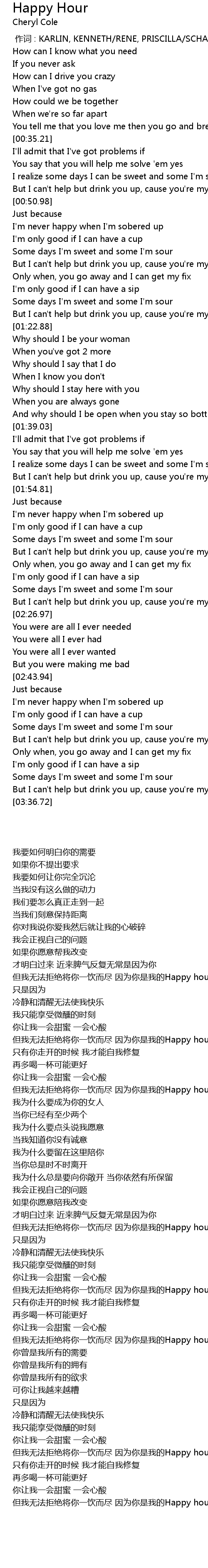 | [00:47.22] | But I can't help but drink you up, cause you're my happy hour |