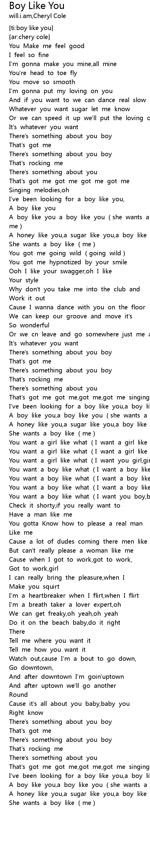 | [01:19.55] | A boy like you a boy like you (she wants a boy like me) |