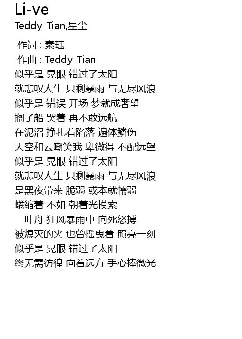 | [00:01.000] | zuò qǔ : TeddyTian |