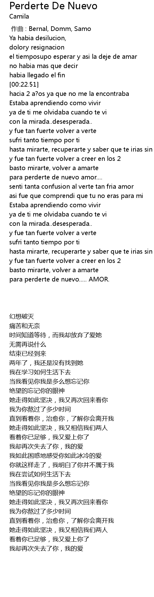 | [02:32.73] | para perderte de nuevo..... AMOR. |