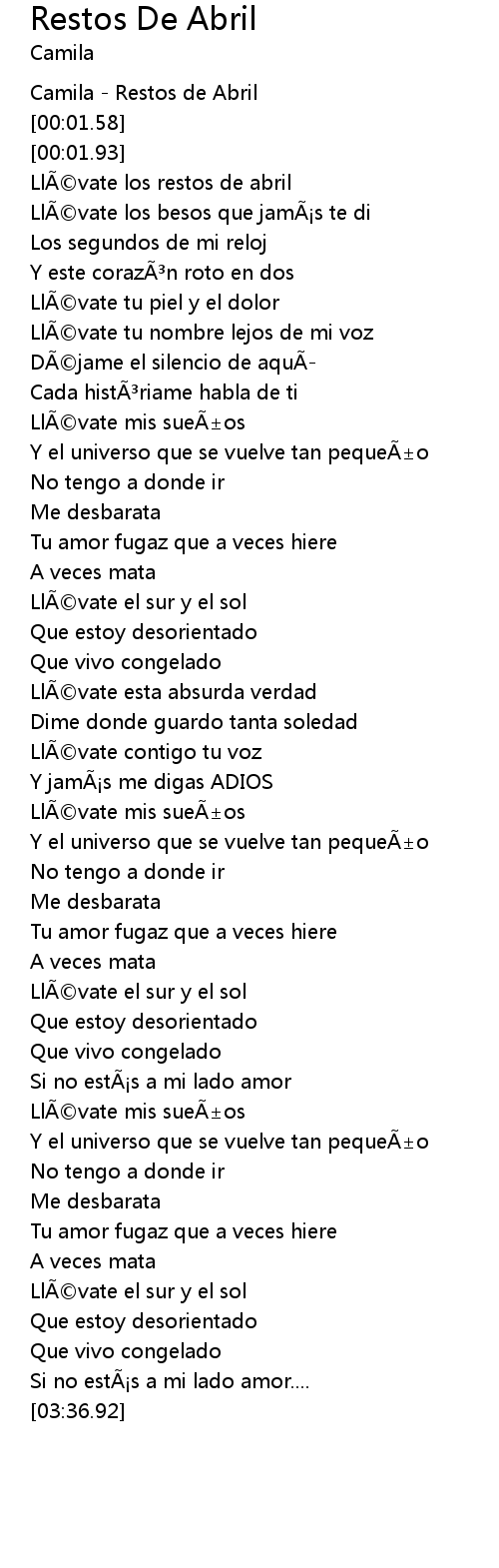 | [00:01.29] | Camila - Restos de Abril |