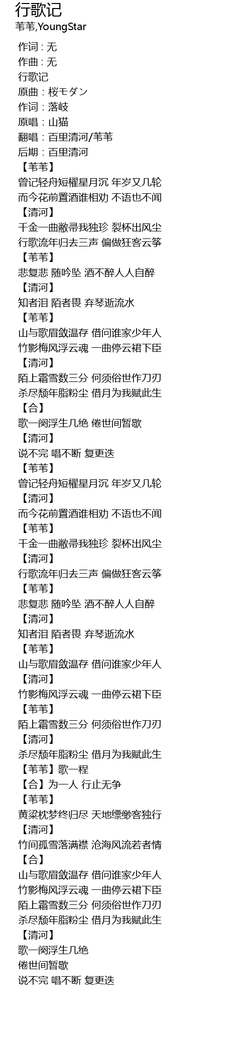 | [00:11.356] | 翻唱:百里清河/苇苇 |