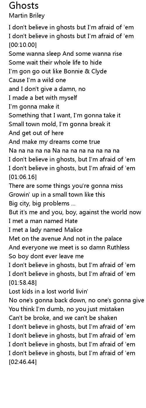 I don't believe in ghosts, but I'm afraid of 'em |