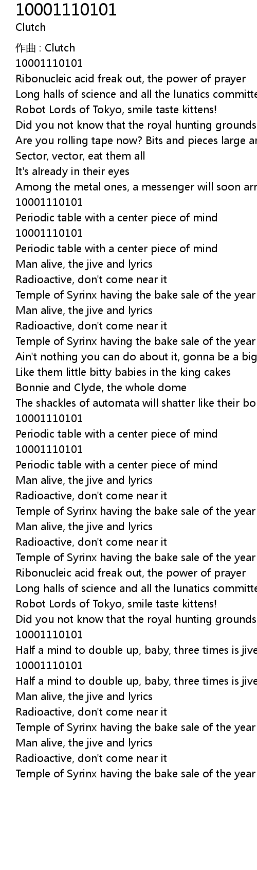 | Song | 10001110101 |