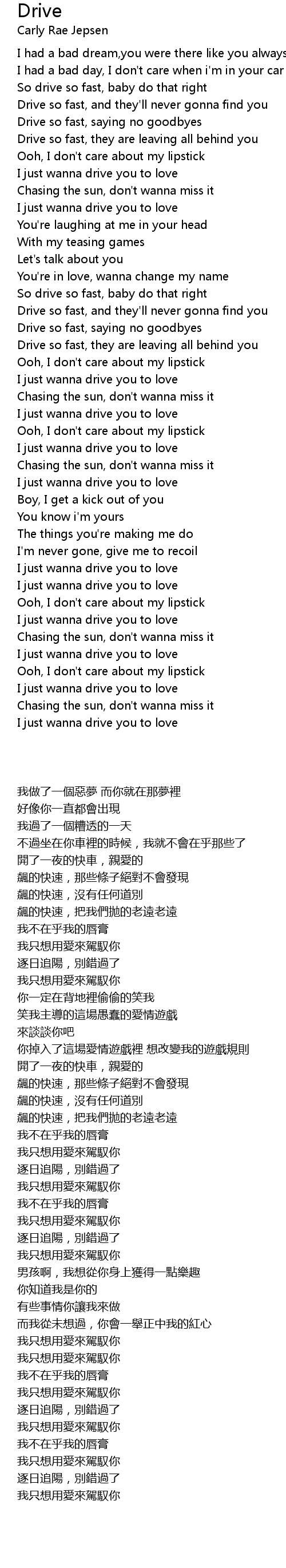 Drive so fast, saying no goodbyes |