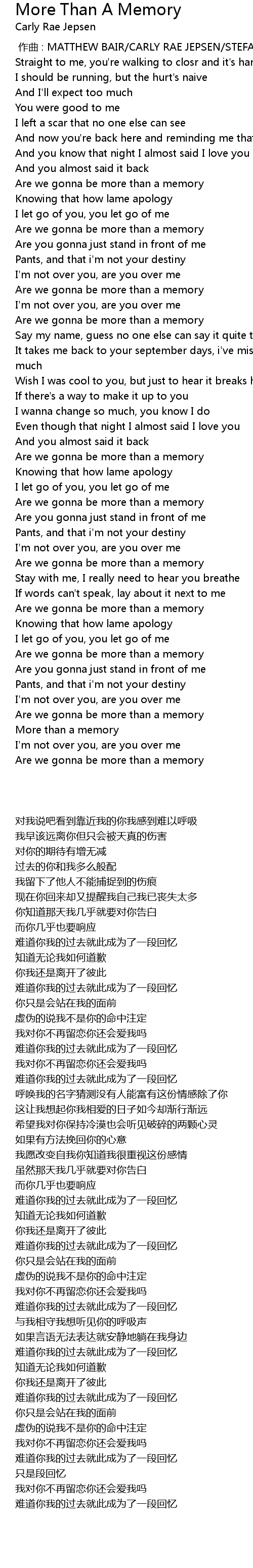 | [00:00.00] | 作曲 : MATTHEW BAIR/CARLY RAE JEPSEN/STEFAN GORDY |