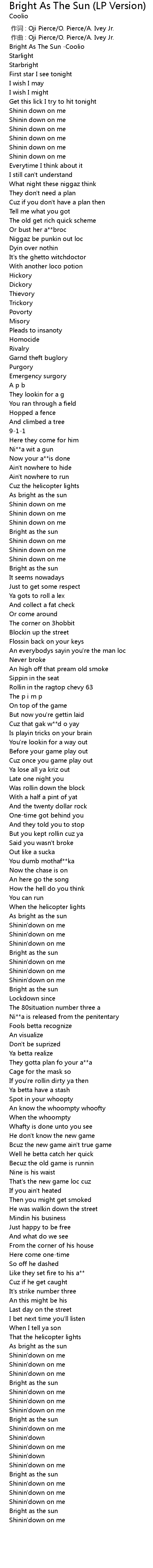 | [00:00.00] | Bright As The Sun Coolio |