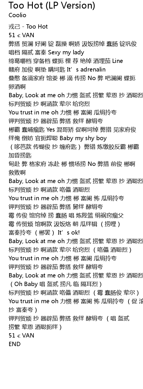 | [00:00.00] | rong ji Too Hot |