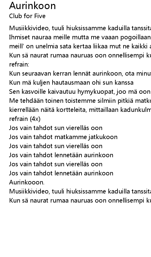 | Kun seuraavan kerran lennät aurinkoon, ota minut mukaasi (2x) | |