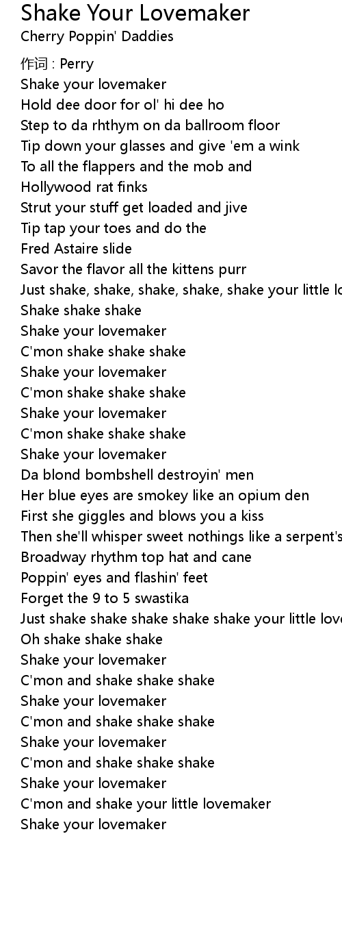 | Just shake, shake, shake, shake, shake your little lovemaker | |