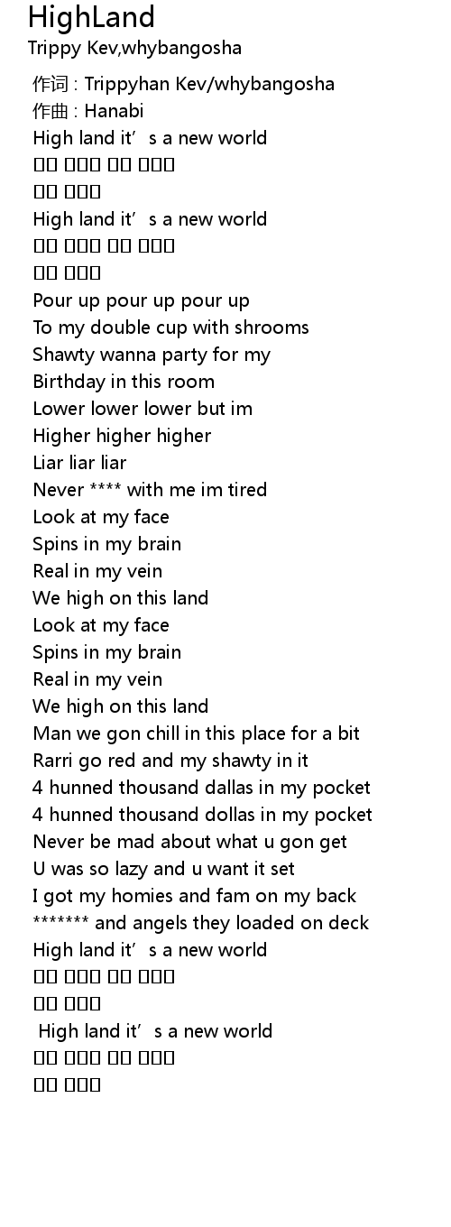 | [00:00.000] | zuò cí : Trippyhan Kev whybangosha |