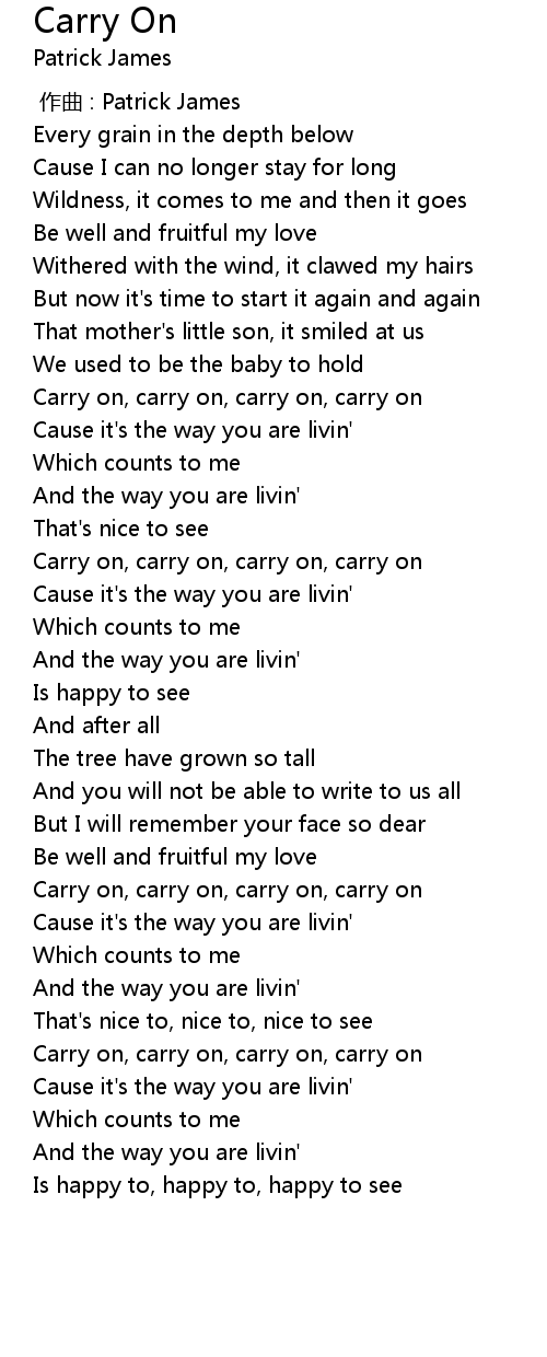 | [01:08.300] | Carry on, carry on, carry on, carry on |
