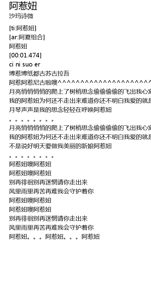 | [03:51.497] | 阿惹妞。。。阿惹妞。。。阿惹妞 |