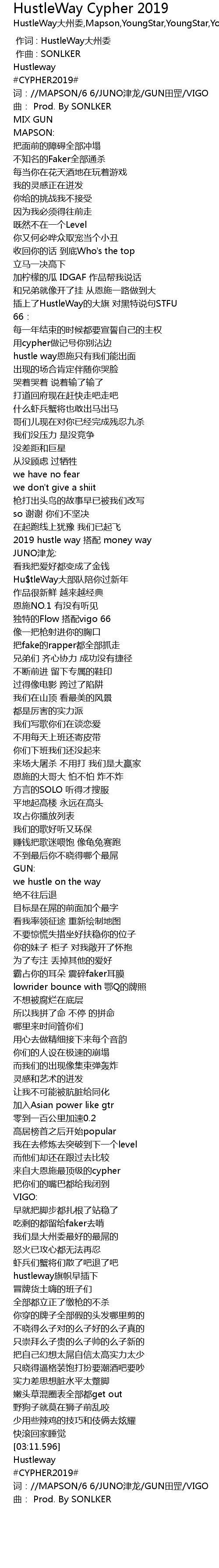 | [00:40.884] | 插上了HustleWay的大旗 对黑特说句STFU |