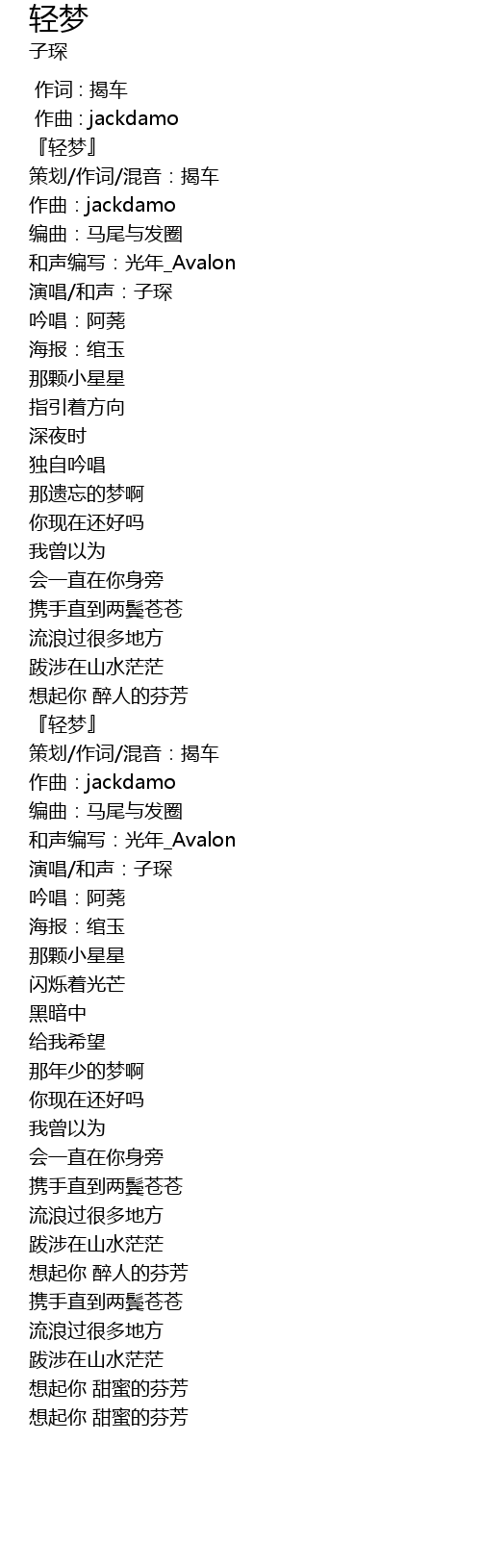 | [00:03.29] | 策划/作词/混音:揭车 |